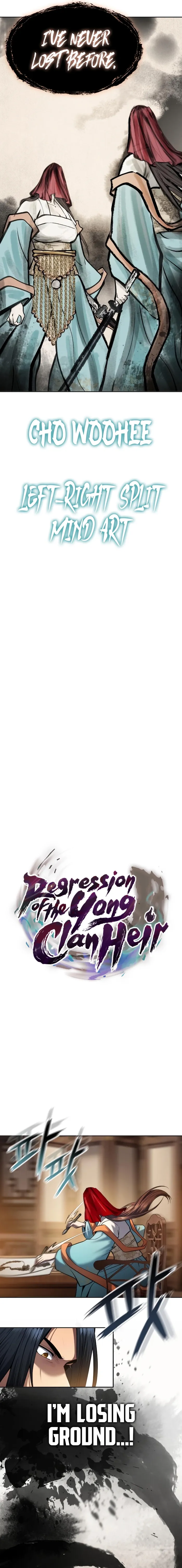 Read the latest manga Regression of the Yong Clan Heir Chapter 47 at Manhuascan . Regression of the Yong Clan Heir is always updated at Manhuascan . Dont forget to read the other manga updates. A list of manga collections Manhuascan is in the Manga List menu.