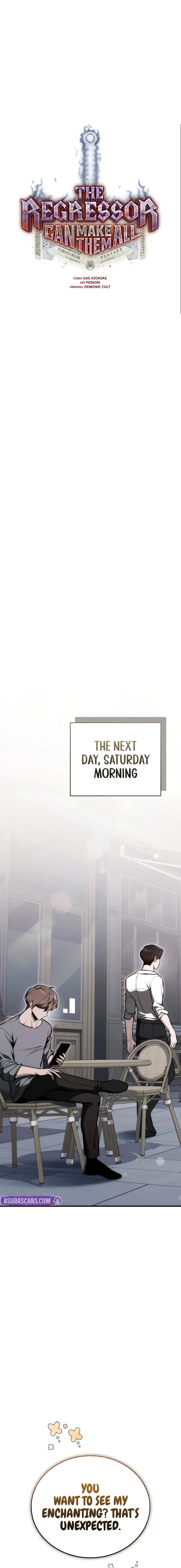 Read the latest manga The Regressor Can Make Them All Chapter 15 at Manhuascan . The Regressor Can Make Them All is always updated at Manhuascan . Dont forget to read the other manga updates. A list of manga collections Manhuascan is in the Manga List menu.
